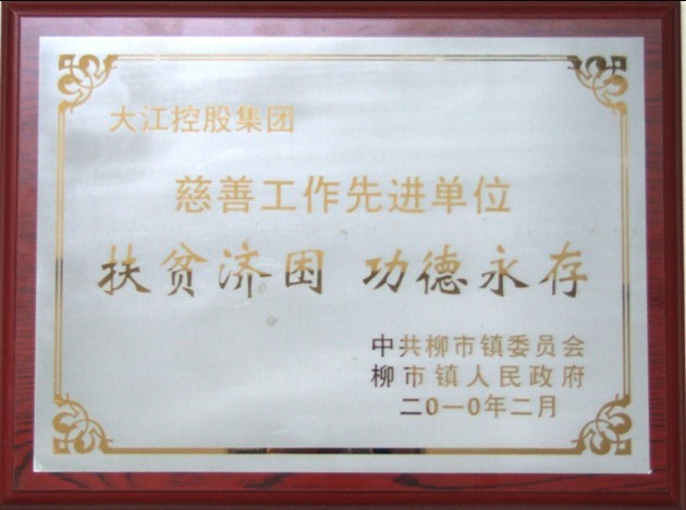 在會上,柳市鎮(zhèn)黨委政府對一年來全鎮(zhèn)為慈善事業(yè)做出了表率和重大貢獻的愛心企業(yè)進行了隆重表彰,會后還舉行了2010年“慈善一日捐”活動,大江控股集團再次獻出了自己的一片愛心,成為柳市鎮(zhèn)慈善分會的創(chuàng)始會員,勇?lián)鐣?zé)任。據(jù)不完全統(tǒng)計,公司近年來累計向社會各界捐款逾百萬元。